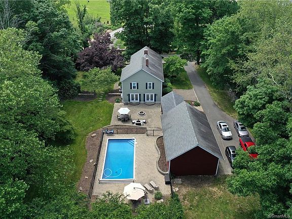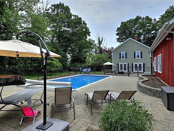 You'll find the best of both worlds in this Antique Colonial built in 1820 and restored with all the updates coveted by today's discerning buyer. This gracious home site includes a classic 3-Bay Red Barn with loft and an In-ground pool all located across the street with tranquil views of Pumpkin Seed Hill Farm. The heart of this home is the huge open Kitchen with freestanding stone fireplace & featuring; cherry cabinetry, Viking 6-burner gas range w/dual ovens, Subzero refrigerator, antiqued copper farm sink, black granite tops, custom built breakfast banquette and large island w/breakfast bar in contrasting color & white quartz top. 2 Sets of french doors look out over the paver patio w/fire pit and pool with open sided cabana. In the Living Rm there is access to the porch and includes the 2nd FP. The Dining Rm and Family Rm are open to each other with gleaming HWD floors. The MBR Suite also departs from a traditional historic home for the better as it includes 2 walk-in closets and updated bath with double sinks & oversize shower w/multiple heads. Two family Bedrooms share the fully updated hall bath with double sinks and tile surround tub/shower. The spacious upstairs hallway also includes the convenient 2nd floor laundry area, a built-in glass front linen cabinet and accented wall of ship-lap. Additional updates include C/A, recent hook up to city water, whole house dehumidifier, HW heater, roof, windows, HWD flooring and new pool liner. Come discover this Colonial Gem!
