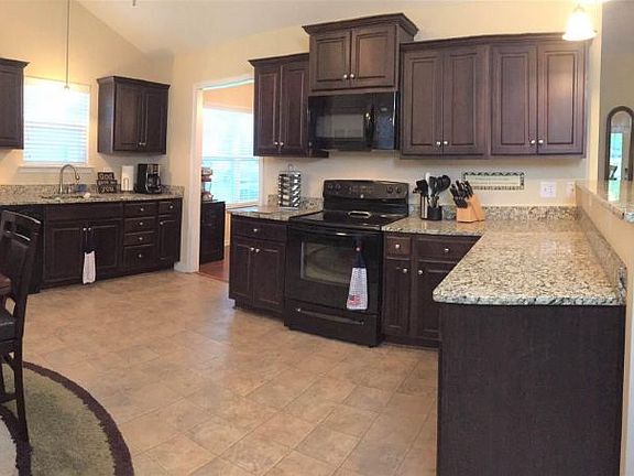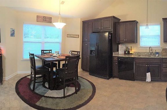 - RoomKitchenFeatures: Granite Counters, Ceiling Fan(s), Eat-in Kitchen, Nook, Floors-Vinyl, Cabinets-Stained, Bar