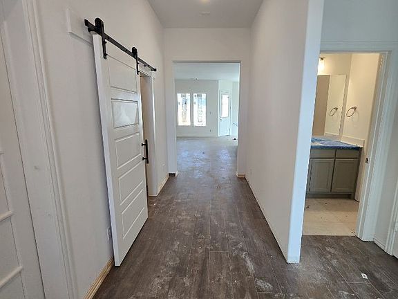 Ask us about our Trade In Trade Up program, we can buy your home! The Verbena floor plan features a modern, open-concept layout and the sought-after features today’s homeowners are searching for. With four bedrooms, three bathrooms, and a flex room, this plan boasts just over 2,400 square feet of functional living space. Upon entering the home off the front porch, you’re welcomed by an inviting foyer. Immediately to the left is a hallway with a bedroom, walk-in closet and full bathroom, as well as a linen closet. Across the foyer is a flex room, perfect for a home office, formal dining room or whatever need your family has for the space. Past the foyer is the family entry, with storage space and mud bench, which leads to the laundry room and two or three car attached garage. Through the entrance, the home opens up to a large family room with a stately fireplace. Adjacent to the family room is a gourmet kitchen, equipped with a walk-in pantry, ample counter space and an oversized island. Finishing off this open-concept living area is a dining space which overlooks the covered back patio. The remainder of this one-story floor plan is just off the living space. A hall leads to two bedrooms with walk-in closets, another linen closet and a shared full bathroom. The back corner of the home offers privacy for the owner’s suite, featuring a massive walk-in closet and bathroom with a dual-sink vanity, standalone soaking tub and glass-enclosed shower.