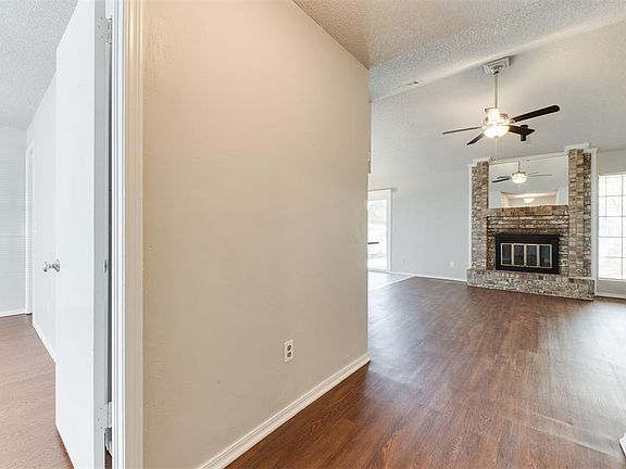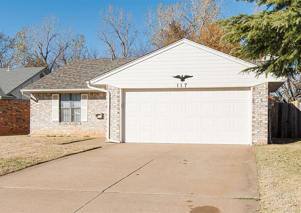 Cute home right in the middle of Edmond near shopping, and convenient highway access. 3 bedrooms, 2 bathrooms, with laminate flooring throughout. Open kitchen and living area with fireplace, and tall ceilings. Primary bedroom is on one side, and 2 bedrooms and bathroom on the other. Inside utility, 2 car garage, and located on a cul de sac. Nice size fenced yard that backs up to a creek. New roof 2023 and exterior paint. Good investment opportunity for Edmond.