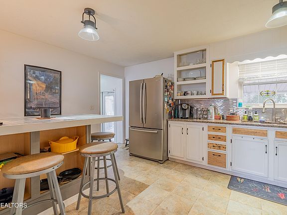 Charming basement ranch home featuring three bedrooms and two bathrooms on the main level. The living room boasts a cozy fireplace, and the kitchen is outfitted with updated stainless steel appliances. Enjoy modern upgrades throughout the home, including a tankless water heater for efficiency. Outside, you'll find an attached carport, a detached garage/workshop, and an additional storage shed for ample storage options. The finished basement, accessible from both inside and outside, offers endless possibilities—it could easily be an in-law suite or apartment. Situated on a spacious lot with a large yard and a generous back porch, this property is ideal for relaxing or entertaining.