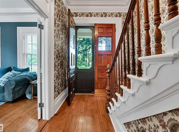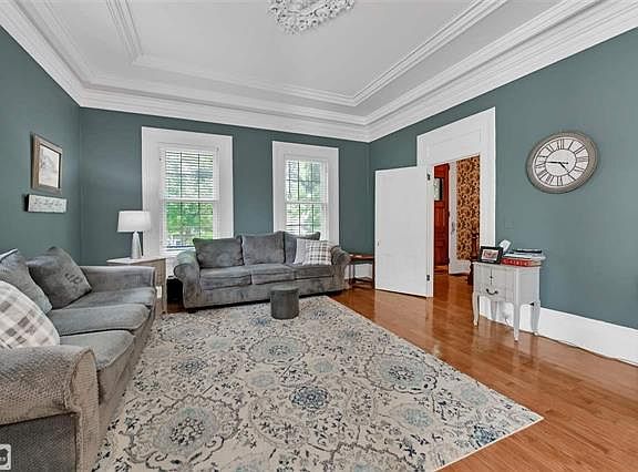 "A work from home paradise" features enormous detached Garage w/Bonus-Room & Covered Side-Porch. "Master Suite" on main level has private entrance to a lovely covered porch (once was a home office entry) could be an ideal, discreet business entrance + 2nd stairwell gives private access to a 5th upstairs Bedroom (another ideal office space.) Amazing 11' ceilings, Original Hardwood, double stacked Crown Molding, authentic embellished Plaster Ceilings & original fixtures. Updated Tall Maple Cabinetry, Quartz counters, Built-in Range/Oven, Huge Walk-In Pantry & large 1st Floor Laundry! All-Season Room overlooks nearly 1-Acre. Entertaining or relaxing on 2 patios. Professionally painted inside & out; Freshly updated Baths, Impressive tall MI Basement w/ Cellar Door is structurally certified w/ newer Block Windows. High on a hill, published as the Romeo Cover in the Historic Romeo Review, proudly boasts only a few owners in it's Historic Record. A grand home & ideal live/work opportunity!