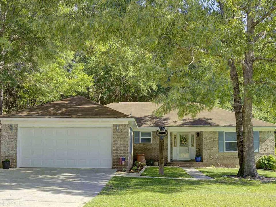 This Ranch style home has a wonderful open & airy feel, with a light color scheme, sunlight streaming in, French Doors, and a tasteful Turtleback Ceiling adding height to the Living Room. The Dining Area viewing both the Living Room & Kitchen, provides extra space with large Bay Windows. Complete with Granite Countertops and Stainless Steel Appliances, this fine-sized Kitchen also offers a Breakfast Bar. Enjoy a relaxing evening in your spacious Master Suite, showcasing custom Trey Ceiling and a Master Bathroom with your favorite features: Double Vanity Sinks, Jetted Tub with Marble Surround, and separate shower. The oversized Laundry Room has a Utility Sink, and the Carpet throughout the home was installed new in 2012. Other updates include new kitchen Granite (2016), added insulation, hurricane rated garage door (2014), and NEW windows/storm door (2016). Even better - you have a Screened Back Porch with great views of the Privacy Fenced Backyard. There is also a Storage Building with lean-to, for additional covered storage. And in Plantation Hills subdivision, you live a short drive from a variety of restaurants, Sam's Club, Jubilee Square shopping, and I-10! Make sure to stop by!