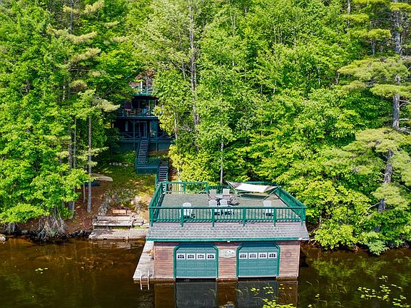 Camp Winslow - Turnkey 4 bed, 3 full bath year round waterfront home with two stall boat house and oversized deck. Three floors of living space including a finished basement. This home has a large deck on the first floor, a large covered porch off of the walkout basement, and a balcony off of the master. Main level kitchen, dining, living room features an open floor plan with a spacious feel. Private feel and lake views from most of the rooms. Excellent rental history and only 5 mins to downtown Saranac Lake. Get in your boat and explore 5 other lakes with 29 miles of waterways and great fishing throughout. Small sandy beach spot by boathouse, plus fire pit with sitting area.