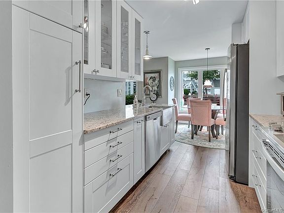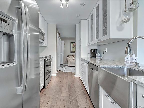 Out of a magazine! Stunning oasis surrounded by breathtaking panoramic views in a recently remodeled, freshly painted, direct waterfront 2 bedroom, 2 bath townhouse condo with a garage and a swimming pool! This slice of heaven offers a white chef's kitchen perfected by an exacting attention to detail, stainless steel appliances and granite counters. Truly a home for all seasons...while away the days in front of the gas fireplace in the living room, or on the direct waterfront patio overlooking the marina, or on the 2nd floor balcony off of the master bedroom while enjoying an ever-changing scenery. Like a vacation every day with wonderful features that blend perfectly with the serenity of unobstructed water views. Your search for magnificent ends here! Flood insurance is paid by the association. 2 pets allowed (dogs and cats automatically permitted). Visitor parking in RESERVED spots.