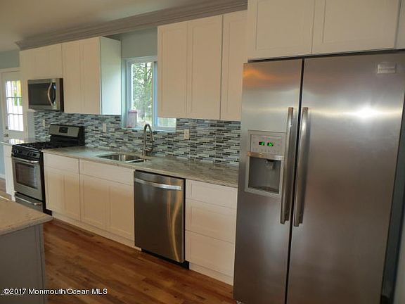 Beautifully and completely renovated ranch in Bayville. This home boasts 3 bedrooms and 2 full bathrooms including one in the master suite along with a walk in closet. There are hardwood floors, vaulted ceilings, recessed lighting, trendy fixtures, and plenty of closet space throughout. The kitchen offers upgraded cabinets and beautiful granite counter tops with stainless steel appliances and is open to the living and dining rooms. Great back yard. Quality work shines through inside and out. Photos are from the same model previously renovated, all finishes will be identical.
