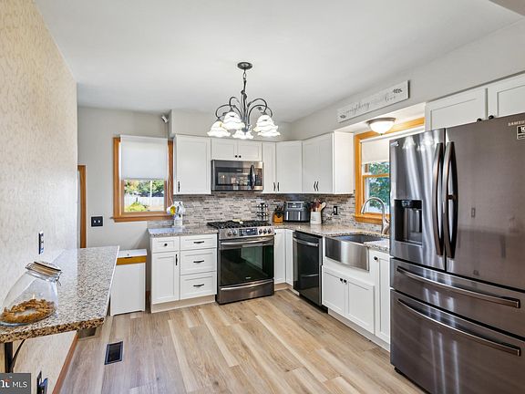 Welcome to this charming 3-bedroom, 1.5-bathroom rancher in Millville, boasting an updated kitchen and spacious living areas! From the moment you arrive, you'll appreciate the convenience of the circular asphalt driveway, offering plenty of parking space. Step inside to find a generous family room featuring a rustic, full-wood ceiling—perfect for cozy gatherings. The updated kitchen shines with granite countertops, additional cabinetry for ample storage, and stainless steel appliances. An adjoining dining room with elegant wood molding adds a touch of sophistication, ideal for entertaining. Each of the spacious bedrooms offers room to relax, with the master bedroom conveniently including a private half bath. Downstairs, the partially finished basement provides extra living space, while the unfinished area serves as a great storage solution with a washer and dryer hookup. This home is a perfect blend of functionality and charm. Schedule a tour to see all it has to offer!
