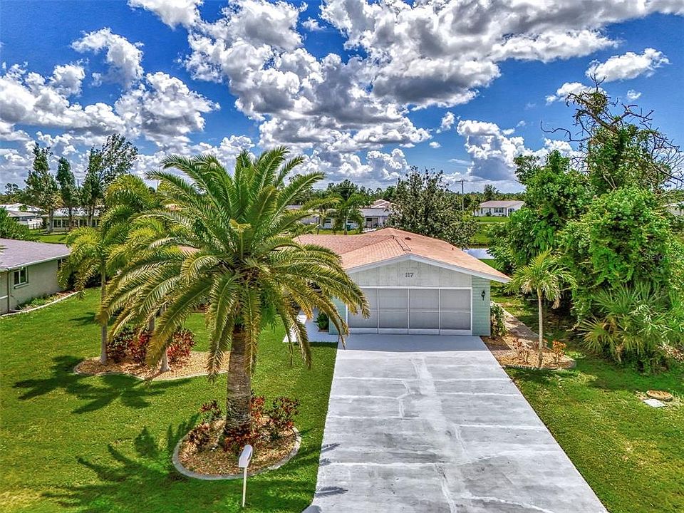 Welcome to 117 Caddy Road in beautiful Rotonda West, Florida! If you’re dreaming of the quintessential Florida lifestyle, look no further. Rotonda West is a charming, deed-restricted community offering an array of amenities and activities. With five golf courses, scenic walking and biking trails, two well-maintained parks (one featuring tennis and pickleball courts), a nature preserve, and 26 miles of canals, ponds, and lakes teeming with fish and wildlife, there’s something for everyone. The Rotonda West Association also hosts a variety of community events and clubs, including music, games, crafting, and knitting. Step inside 117 Caddy Road, a cozy and inviting two-bedroom, two-bathroom home with an oversized two-car garage, centrally located in Rotonda West. Exterior: This charming home boasts a durable block and stucco exterior. The plumbing was repiped in 2010 and the HVAC equipment along with the ducting was replaced in 2022, ensuring peace of mind for years to come. Kitchen: The heart of the home features updated Martha Stewart cabinetry, elegant granite countertops, and contemporary lighting, making it a chef’s delight. Bathrooms: Both bathrooms have been tastefully updated with Martha Stewart cabinetry, cultured marble countertops, and stylish tile shower enclosures. Windows: All windows have been replaced with impact-resistant versions, except for the kitchen window and the French doors in the flex-room. Flooring: Enjoy the beauty and durability of ceramic tile flooring throughout the home. Primary Bedroom: The spacious primary bedroom includes an en suite bathroom and a walk-in closet with new shelving and an organizer. Second Bedroom: The second bedroom features built-in shelving and a wardrobe-style closet with new shelving. Both bedrooms have sliding glass doors that open onto a screened-in lanai. Flex-Room: This versatile space, with double French doors leading to the lanai, is perfect for a home office, reading room, or any other use you can imagine. Main Living Area: The open layout of the living room, dining room, and kitchen is perfect for entertaining and relaxing. Florida Room: Connected to the living and dining rooms, the Florida room features a French door with integrated blinds leading out to the lanai and a four-panel sliding glass door that overlooks the patio, canal, and backyard with a mature magnolia tree. Landscaping: The professionally landscaped exterior showcases pride of ownership and adds to the home’s curb appeal. Beyond the community, enjoy world-class beaches, dining, shopping, and all that this unique area has to offer. This house is unoccupied, move-in ready, and waiting for you to make it your own. The listing agent is related to the owner. Schedule your exclusive showing today and start living the Florida dream!