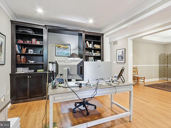 Rarely offered luxury townhome in the quaint enclave of Cold Point Manor. Experience three levels of sophistication and thoughtfully designed living space. The main level features 2 ¼’’ oak hardwood, three-piece crown molding, and Sonos hard-wire speaker system throughout. A spacious gathering room boasts cathedral ceilings and a gas fireplace with a custom-built mantel, opening up to a gourmet kitchen complete with stainless steel GE appliances, granite countertops, upgraded cabinetry, hot water dispenser and wine refrigerator. A breakfast room and access to a maintenance-free composite deck overlooking a private view. A formal dining room with a stunning coffered ceiling, office/study with custom-built cabinetry, plus a half bath and access to the garage with electric car charger and California closet organization system completes the main level. A hardwood staircase leads to the second floor with two generously-sized bedrooms, laundry space, and a hall bath. The Owner’s Suite features an inviting sitting room, walk-in closet, and luxurious bathroom with an oversized frameless shower with two shower-heads, and a separate soaker tub. The lower-level has been perfected for the best of entertaining. A custom-built bar with sink, dishwasher, and space for an icemaker overlooks the built-in entertainment center with vent free fireplace, and an additional half bath. A designated fitness area and storage room complete the lower-level. Recent updates also include new Roof (2024) and HVAC (2023). Don't miss this meticulous home in a great location- schedule your showing today!