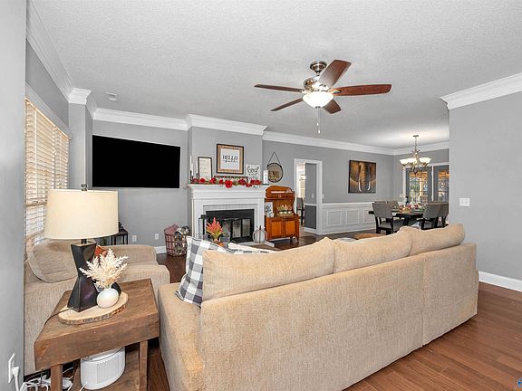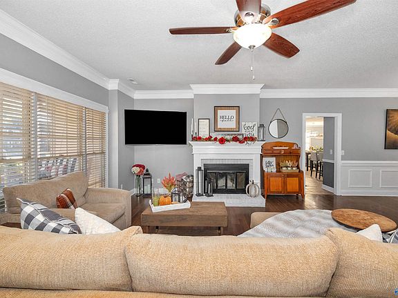 - Features: 9’ Ceiling, Ceiling Fan(s), Chair Rail, Crown Molding, Fireplace, Laminate Floor