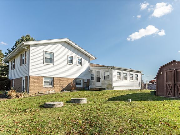 Charming and spacious multi-level home in a peaceful setting! This 4 bedroom 2.5 bath home offers a quaint kitchen, open to the dining room, a living room with a woodburning fireplace and a 3 seasons sunroom with sliding glass door for access on the main level! The upper level offers a full bath, an owner's suite with a half bath and 2 additional bedrooms. The lower level hosts a 4th, large bedroom or game room, laundry room and a full bath. The lowest level is equipped with a beautiful brick fireplace and a space with potential to finish! The outside features a 2 car attached garage and a level, fenced in yard situated on 1/2 an acre!