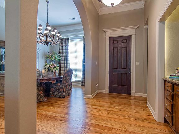 All brick one level home offering 4BR/3BA, formal dining and a dedicated office with custom cherry bookcase. The great room has a lovely interior/exterior gas fireplace and wet bar. The owner’s suite includes an en-suite bathroom with a soaking tub, walk-in shower and fireplace. The open plan kitchen has a new gas stove and granite countertops, opening into the hearth room with fireplace, making this area perfect for gatherings. Custom cabinets and crown molding throughout, including travertine in bathrooms. Beautiful authentic hardwood floors completely redone in April 2024 (including owner’s suite). Additional amenities include a deck with an exterior fireplace and gas grill connection, a laundry room, sprinkler system, two car garage, large storage area under house, roof 2018, HVAC 2019, water heaters 2021 & 2024, custom built bookcase in greatroom conveys. There is so much more to this special home you just have to come see. The kids will love that it is within walking distance of the Chalamont pool and park.