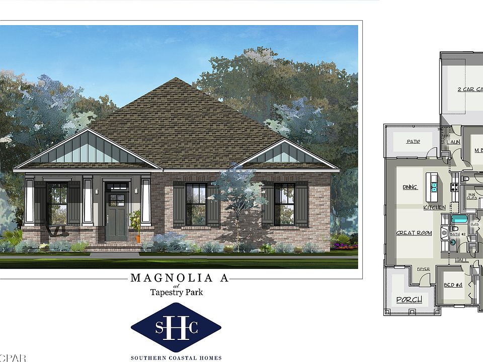 NEW CONSTRUCTION offered in the brand new Tapestry Park Phase III in Panama City Beach built by Southern Coastal Homes. Homeowners have access to Phase III pool, lighted sidewalks and green spaces as well as access to tennis courts. basketball courts, club house and community pool of subsequent community phases. This 4/2 MAGNOLIA floorplan is a brand new Southern Contemporary design with old Florida charm and coveted new technology and upgrades. INTERIOR features grand foyer, large volume Great Room with tray ceiling, mud room at rear entrance, kitchen with center island, custom cabinetry, pantry, and stainless steel appliances.