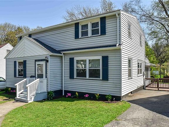 Spacious bright open floor-plan with a recent face-lift inside and out. Downstairs you'll find new laminate flooring w/baseboards throughout the over-sized living/family room & dining room. E-I-K with ceramic tiled floor, walk-in pantry & all appliances included. Off the kitchen is an enclosed 3 season porch overlooking a huge deck, just coated with "Deck Over" by BEHR. First floor bath is ready for washer/dryer,or a tub/shower stall could be installed. New carpet leads you upstairs and through the 3 large bedrooms. Master w/ huge walk-in closet! The bathroom has been newly renovated with ceramic flooring, new tub w/ tiled surround & vanity. Freshly painted throughout. Brand new open front porch*doors*landscaping. And best of all a Brand New Tear-Off Roof & Gutters! A Must see!