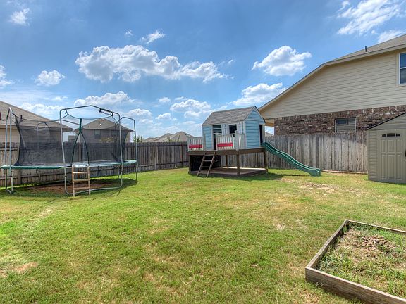 Very open floor plan with high ceilings. Great location in Summerlyn with community playground and pool. Custom built desk/work station in living area- Perfect for home school or work area. Master bedroom has a walk in closet and a master bath with double vanities, garden tub and separate shower. Large back yard has a children's' playhouse with a slide and a storage building.