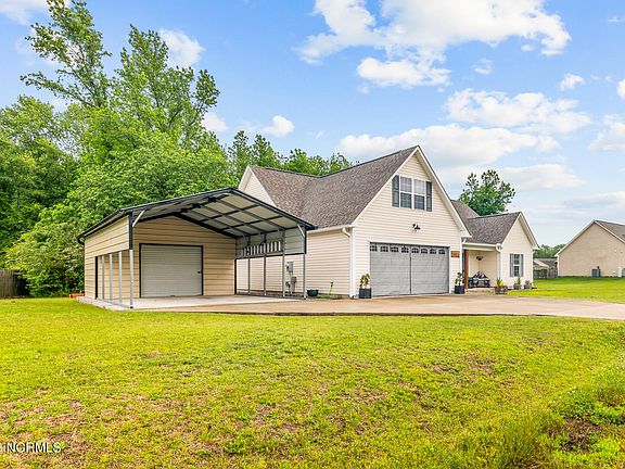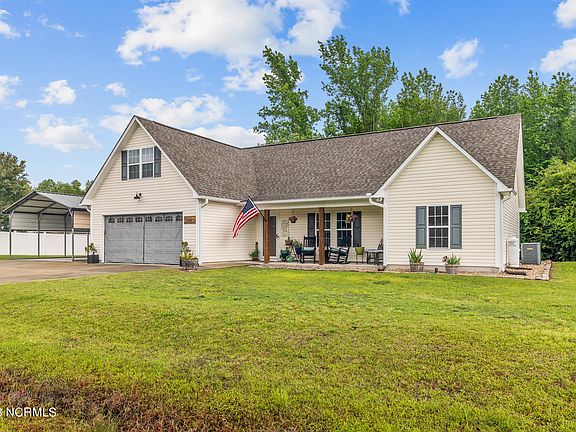 Welcome to the charming 117 Christy Drive! The exterior of the home features beautiful wood beams and a large carport with