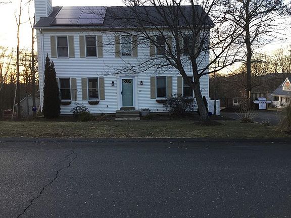 Spacious Colonial in one of Belchertown's desirable areas! This home features an open concept living area, plenty of closet space and an updated kitchen with rustic center island, pantry and new stainless steel appliances. The formal dining room is very versatile and is currently being used as a home office. There is access in the living room to the chimney for a fireplace. The generous size master bedroom features a sitting area, master bath, and walk in closet with built in's. Bright walkout basement is ready to be finished and leads out to the fenced in back yard. BRAND NEW ROOF and solar panels 2019. Hot water heater and washer 2018. DO NOT MISS YOUR CHANCE TO VIEW THIS GREAT PROPERTY AT THE OPEN HOUSE SUNDAY MARCH 31, FROM 12-2