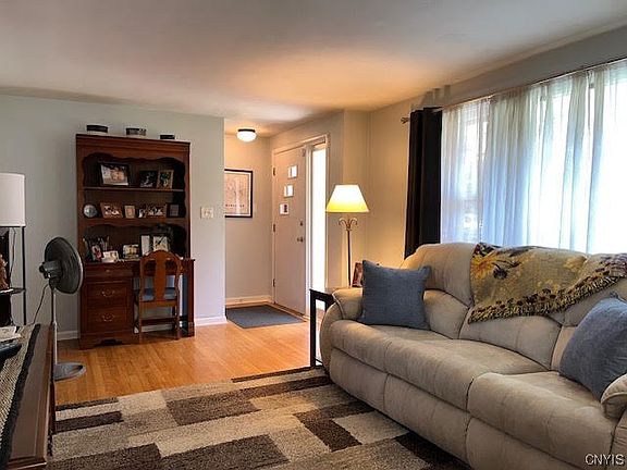 Adorable 3 Bedroom 1.1 bathroom Ranch home in N Syracuse School district. Hardwood floors throughout much of this move in ready home. New roof and gutters just this year. Updated eat-in kitchen with Stainless Steel appliances and lots of cupboard space. It's open from the kitchen into an inviting dining/family room with a 1/2 bath. Step out from the family room to barbeque or just relax on the recently built 12X20 deck. Mature trees shade the fully fenced private back yard. There is a brand new unique rubberized floor in the attached garage. There's just two steps from the garage directly into the kitchen. You'll find the large laundry room in the full basement along with newer hot water tank and boiler that both run on gas to heat. In the event of multiple offers the seller may decide to set an offer deadline. Taxes are shown with NO exemptions. A STAR rebate may be available for owner occupied.