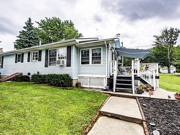 This well-maintained 3-bedroom modular ranch features a 2-car garage and is situated on a level lot within a planned unit development. Relax on the expansive deck under the 2023 electric awning. Proceed inside to discover a welcoming mudroom/4-season enclosed porch where you can kick off your shoes, shed your outerwear, and relax during inclement weather. A convenient laundry room with side-by-side washer/dryer and an industrial-style stainless steel utility sink are hidden behind a sliding door. There is attic access above these 2 rooms that is floored for storage. The dining area, accented by wainscoting, seamlessly connects to the generous sized living room boasting hardwood floors and a romantic gas log fireplace. The well-appointed kitchen features stainless appliances, tile backsplash, abundant counter surface, pantry cabinet, and a few cabinets with pull-out drawers. The versatile layout includes a flexible room beyond the double French doors that can serve as a bedroom or an office. Hardwood floors flow down the hall leading to a guest full bath, a second bedroom, and a private primary suite with walk-in closet and comfortable ¾ bath. Ideally located near shopping, restaurants, I-89, and the airport for utmost convenience.