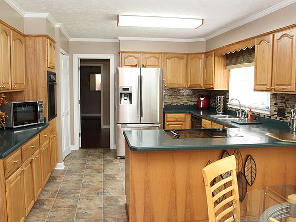 This spacious 4 bedroom brick home is located in Country Club Estates on a 1.44 acre lot. It has formal rooms and a huge den with stone fireplace and gas logs. From the den you can enter the sun room with it's stunning view of the backyard. It will be a great house for entertaining! The kitchen has beautiful cabinets with solid surface countertops. There's also a breakfast bar, built-in desk, breakfast nook with bay window and a pantry. There is a half bath off the laundry room which comes complete with washer and dryer. The paved drive leads to the double garage. You'll appreciate the extra storage provided by the outbuilding. Don't delay in making your appointment to see this lovely home.