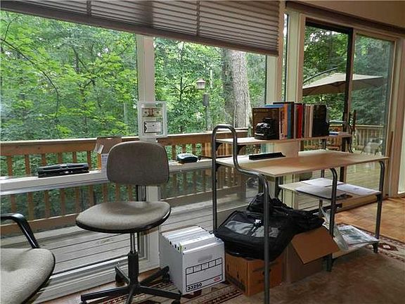 Open & Airy multi-level contemporary centrally located to shopping and transportation but nestled in the woods. The open floor plan will make for wonderful entertaining. The finished lower level includes a fireplace, an additional room (possible 5th BR) with a full bathroom and walk out to a secluded patio area. Enjoy nature or bird watching from the large deck or enjoy the view from inside thru the wall of windows on the main and lower levels. Hardwood floors and neutral d?cor top off the warm feeling