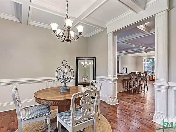 Welcome Home to South Effinghamâs gated, Covered Bridge community! This stunning 4 bed 3.5 bath home is BETTER THAN NEW offering quality construction and superior craftsmanship. The home's spacious floor plan includes a large formal dining room and inviting living room where custom built-ins surround a cozy fireplace. The homeâs impressive kitchen boasts gorgeous granite counter tops, stainless steel appliances, a large center island with sink & breakfast bar as well as a separate breakfast area. New homeowners will enjoy a main level master retreat including a lovely tray ceiling and luxury bath w/ double vanity, jetted tub, and separate shower. Each bedroom offers generous walk-in closet space. Additional upstairs bonus is perfect for added entertainment, play room, or home office. Location, plentiful indoor & outdoor living spaces, and polished custom details throughout make this home the ideal haven!