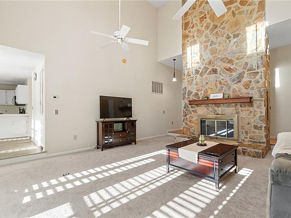 Discover this charming single-story, 3-bedroom, 2.5-bath home, designed for comfort and relaxation. Enjoy a private retreat with a fenced inground pool, great for warm days. Inside, new carpet graces the sunken living room with a cozy gas log fireplace. The updated primary bathroom (2018) features a tile floor, luxurious tile shower, and a modern vanity with a built-in hamper. The eat-in kitchen comes fully equipped with appliances. A versatile den offers additional living space, great for a home office or TV room. Relax on the screened back porch overlooking the pool. Pet owners will love the Invisible Fence brand system with two collars. A single attached garage provides ample storage.