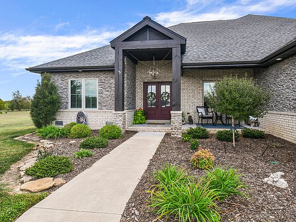 One-Owner Custom Build on 3.4 Acres with Stunning Views! This All-Brick & Stone beauty offers 2,532 sq. ft. of Open-Concept living, All on One Level, Surrounded by meticulously maintained landscaping & breathtaking vistas.Step inside & be welcomed by an abundance of natural light, thanks to large windows throughout the living area that captures the serene views of valley below. The spacious layout includes 3 generously sized bedrooms, 2 full bathrooms, formal dining, large breakfast area next to the open kitchen . All of this and More to provide comfort & style in every corner of the home.For the vehicle enthusiast's, you'll love the 1735 sq. ft. of garage space, accommodating up to 5 cars ! There's a 3-car garage with a workshop & Custom Storm Shelter on the Southwest side of the home, as well as a 2-car garage on the southeast side of the home that could potentially be converted into additional living space, or another Bedroom or even a bathroom- endless possibilities to make this home truly your own .Nestled on 3.4 acres , this home offers the perfect blend of privacy & open space while still being close to Town & all the Amenities. Whether you're looking for room to expand or a peaceful retreat, this property has it ! Come & Experience All this Home has to offer, so Much more you need to see for yourself . Don't Miss the Opportunity to make this Custom Gem your forever Home. ...A Very RARE find Indeed ...