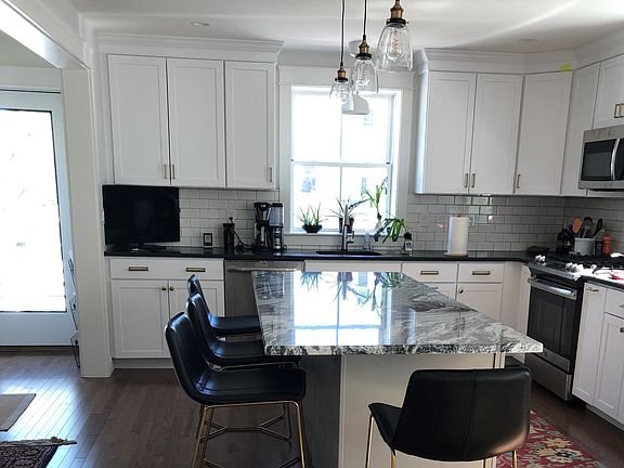 1300 sqft completely renovated 2 bed 2 bath apartment. Bright 2nd floor unit with upgrades throughout, including hardwood floors, laundry in unit, high efficiency heat pumps provide heat and air conditioning. Kitchen has granite countertops, a large island, high-end stainless steel appliances including dishwasher, gas range, fridge with ice-maker, and garbage disposal. Bathrooms have granite countertops and heated tile floors, one bathroom has a shower and double vanity, the other a spacious tub/shower. Two covered off-street parking spots, mudroom, original stained glass in living room, large private deck, and custom closets including a master walk-in. New windows, high efficiency hybrid water heater, and energy efficient lighting. In the heart of Oakdale neighborhood, close to Back Cove, USM/UNE/Maine Law, Woodford's Corner. Tenants pay electric, cable, internet, and gas.