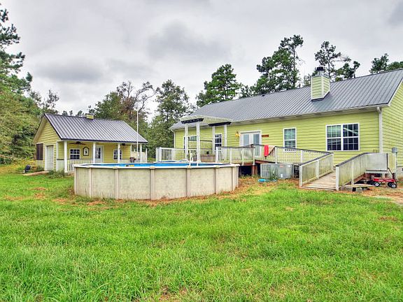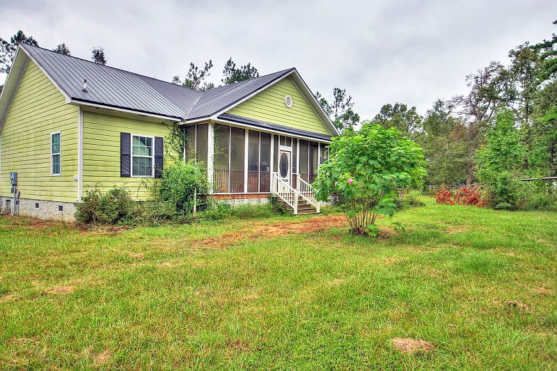 A quaint, country home located on 3.57 acres just minutes from lake Moultrie! This 1700 square foot home includes three bedrooms and two bathrooms. This home features a large screened in front porch that enters into the spacious living room with hardwood floors and crown molding. The master bedroom has an en suite bathroom and a cozy fireplace that is shared with the living room. The second bedroom also features an en suite bathroom. The eat-in kitchen is spacious with plenty of storage. A bonus of this home not only includes the above ground swimming pool but also a pool house that has a screened in porch, garage door, outdoor shower, and bathroom! This space has great potential for becoming a workshop or guest quarters!