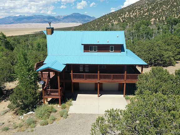 Exceptional turnkey cabin with a Millon dollar view of the Sand Dunes National Monument - just a 6-minute drive away!! Elevation 8000ft. If you are looking for an amazing, get-a-way cabin and/or perfect dream home with year around access. Search no more! This 2bdrm/2 ba cabin has vaulted T & G ceilings and walls, emerald-green marble counter tops, bathroom vanities and matching marble-tile tub enclosures. This fully functional kitchen can inspire the chef in you with top-of-the-line stainless-steel appliances. Experience the big views from the private primary loft: walk in closet, spacious full bathroom and private balcony. When you wake up, the views, will make you feel like you are on top of the world! The dark walnut hardwood floors are an exquisite accent to the T & G feature throughout the cabin. Love the stone fireplace within the great room! My favorite feature is the wraparound deck and private balcony! This property is located in the heart of Zapata where north Zapata creek runs year around below the ridge of this cabin. Experience the sweet sound of the stream below, feel serene, and peaceful solace 24/7. The design to this cabin cannot truly be appreciated till you see it with your own eyes. Last but not least, the 2-car attached heated garage is located on the main level with an enclosed breezeway style hallway which houses a separate front entrance, laundry room and utility room (beneath the second level). Two ways to access the upper level, through the enclosed breezeway or up the south facing exterior staircase which leads to the front French door entrance. All four seasons at this property are award winning pictures in living color. The Aspens below this property are stunning during the fall season. Discover "Zapata" it is an amazing place surrounded by the Sangre de Cristo mountains, forest and BLM property. Bonus Offer: $6000 Credit to the buyer upon a full price offer. Can be used for closing costs, buyer points, etc.