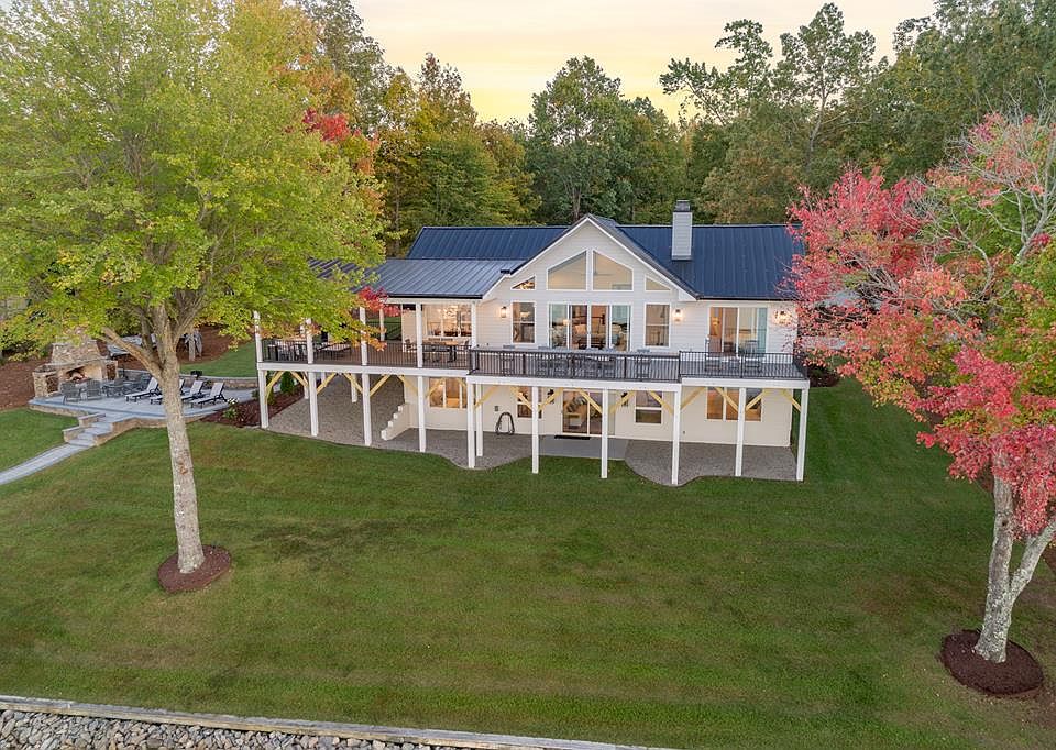Luxury Lake Gaston home on a coveted main lake lot with spectacular views! This completely renovated waterfront lake cottage will have you from “hello”. Professionally designed and decorated, every surface and feature have been touched to create a perfect union between luxury living and lake life. Centrally located in an upscale neighborhood with highspeed fiber internet, this home boasts three ensuite bedrooms, open living spaces, and expansive water views. Custom cabinets with quartz and marble countertops throughout, shiplap walls and ceilings with exposed wooden beams, as well as custom hardwood and artisan tile flooring are only a few of the many unique luxury features. Enjoy outdoor living on the lake side deck with a built-in bar, relax on the paver patio with a wood burning stone fireplace, or stroll to the shoreline to enjoy lake time at the double boat house. Lake life is good!