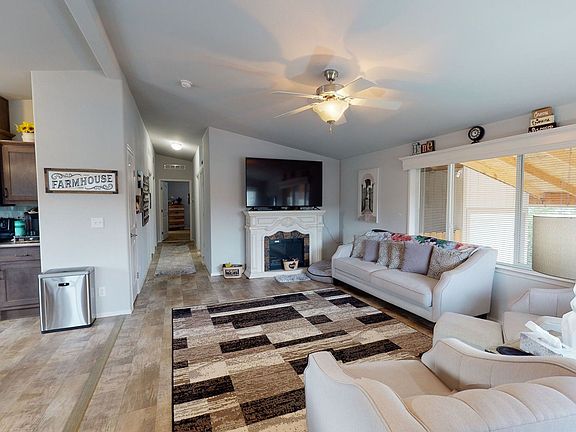 Beautiful newer manufactured home in a family park. This 3/2 has large bedrooms & an open floor plan. Adorable front deck w/sitting area & cute fenced in dog yard. This home sits on a large lot in the back of the park with limited neighbors. Add onto the existing fencing to accommodate for a larger entertaining area. This home has it all, extra wide doors & hallway, security system with tv screen included, rain bird sprinkler systems installed. Space rent $661 includes water, sewer, and trash.