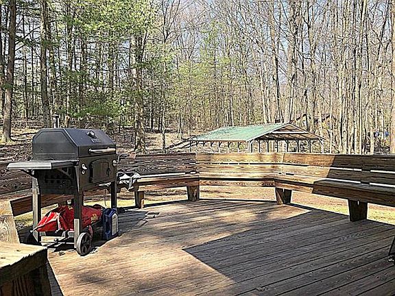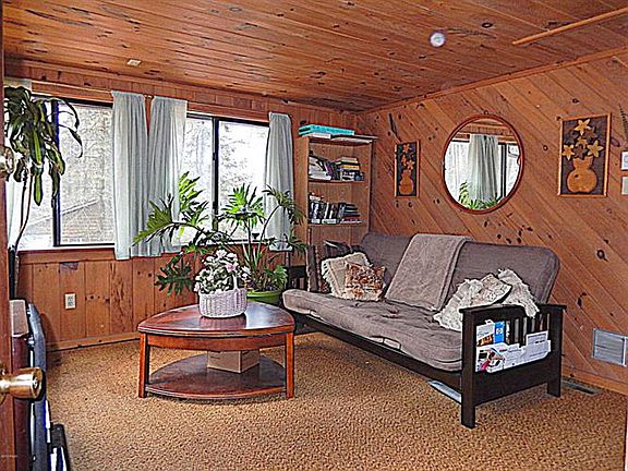 Charming Carriage House on 1.36 acres in serene wooded setting, partially wrapped in beautiful rhododendrons, is very CLEAN and priced to sell! Located on a township road, Quality redwood sided home with Drake custom built interior featuring knotty pine kitchen cabinetry and walls, natural light streaming through glass living room, sun deck, wood stove in family room and plenty of storage built ins. New hot water heater, propane furnace and Car port that is perfect to park boats, trailers or use as covered work space. Wallenpaupack lake rights access for water play activities.