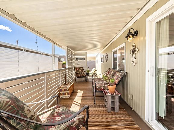 Nestled in the desirable Ojai Villa 55+ Gated Community, this exceptional corner-lot residence boasts breathtaking mountain views and an array of modern upgrades. The thoughtfully updated interior features a stylish kitchen and bathrooms, complemented by elegant vinyl plank flooring, dual-pane windows, and recessed lighting throughout. Ample cabinetry and storage solutions, including a spacious storage shed, provide both convenience and functionality. Enjoy outdoor living with a generous porch and private backyard. Residents have exclusive access to premium community amenities, including a clubhouse, sparkling pool, indoor spa, state-of-the-art fitness center, and billiard area. Experience comfort, convenience, and resort-style living in this remarkable home.