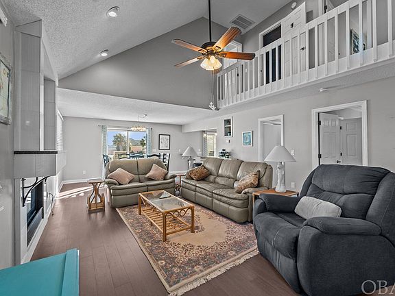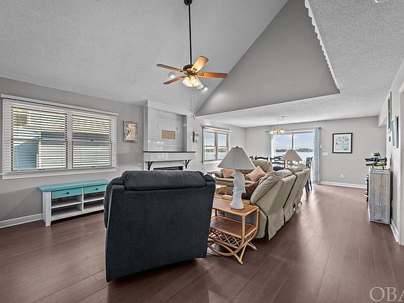 Immerse yourself in coastal living with this meticulously maintained and updated 3-bedroom, 2-bath home boasting unparalleled views of Kitty Hawk Bay. Reflecting pride of ownership, the property exudes a polished and turn-key appeal. Located outside the gates of Colington Harbour on a serene cul-de-sac, this primary residence offers a tranquil retreat. The main level showcases an open floor plan featuring a family room with a fireplace, a dining area, and a kitchen adorned with granite counters and stainless steel appliances—all overlooking the captivating water views. A screened porch adjacent to the kitchen, offering stunning water views, provides a perfect spot for relaxation and al fresco dining.  This level also includes a generously sized bedroom, a full hall bath with custom tile, and a convenient laundry area.  Journey to the upper level, where a dramatic gallery overlooks the family room below. On one side of this floor, discover a spacious bedroom with captivating water views, a private balcony, and a convenient walk-in closet. A thoughtfully positioned skylight bathes this room in natural daylight and offers a starry view of the sky at night.  On the opposite end, a well-appointed guest room is accompanied by a fully renovated hall bathroom, boasting custom-tiled finishes, a walk-in glass shower, and a relaxing jetted tub. Completing the home, the ground-level carport is enhanced by an adjacent brick lined patio area with a porch swing facing the Bay and includes a workshop area and a substantial storage area.  Enjoy a harmonious blend of comfort and coastal elegance in this inviting primary or second home getaway, with its breathtaking views and pristine condition.  All you need to do is move in!