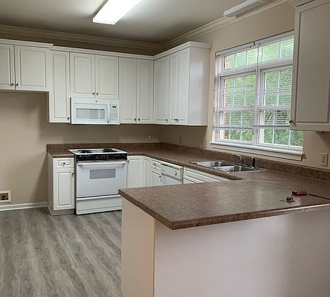 Freshly updated with new paint and flooring in kitchen and bathroom. Half bath on first floor. Bedrooms on second floor. Good sized deck off kitchen and dining room. Located at back of cul de sac. One year lease required. No pets.
