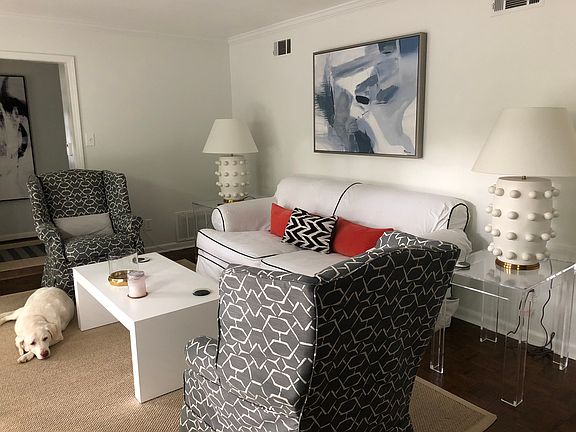 Lovely brick 3 bed 2 bath home with living room, den and dining room spaces. Enclosed garage and large fenced in yard. Off street parking. Stainless steel appliances. Hardwood throughout. Washer and dryer. Pets welcome with nonrefundable deposit. Minimum one year lease. Unfurnished. Tenant pays utilities. No smoking. Property has garage and driveway for off street parking. Unfurnished.