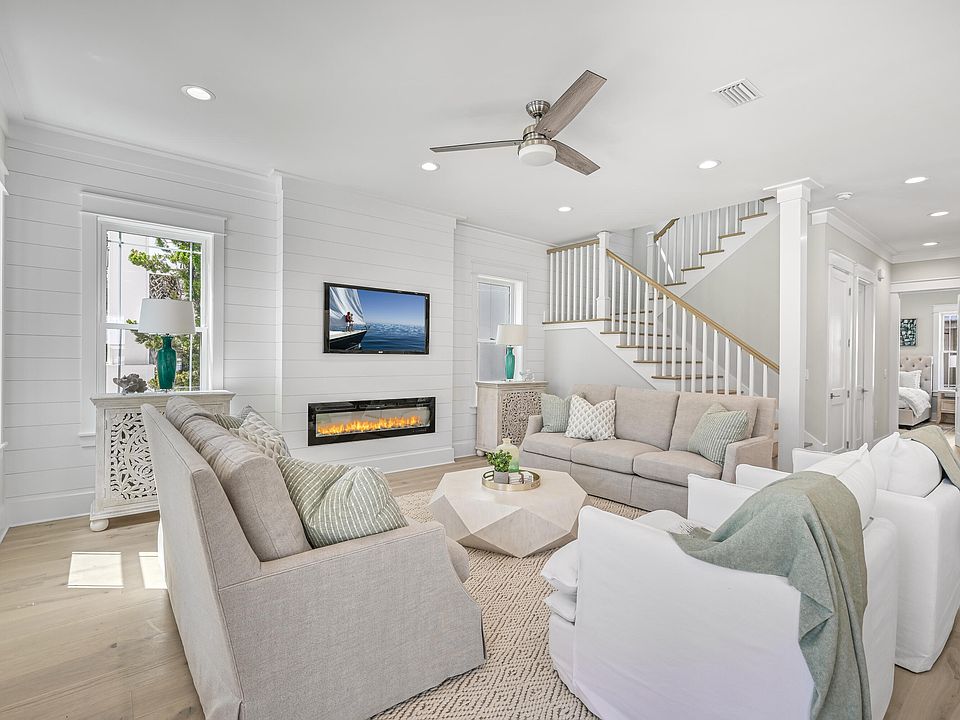 Brand new construction awaits in the coveted coastal community of Seacrest, ideally positioned between Alys and Rosemary Beaches along Scenic Highway 30A. Boasting nearly 3,000 square feet of living space, five bedrooms and four-and-a-half baths spread over two stories, this fully-furnished home is ideal for large groups or rental investment. Recently completed in 2023, this home offers high-end finishes, owner's suite on the first floor, two living areas and abundant natural light in an open-concept design. The second floor provides three bedrooms and a bunk room with access to a second-story porch ideal for relaxing after a day in the sun. This home offers convenient access to a large lagoon pool and beach access as well as tram service to the beach and close walk to restaurants and shops in 30A's most beloved communities.