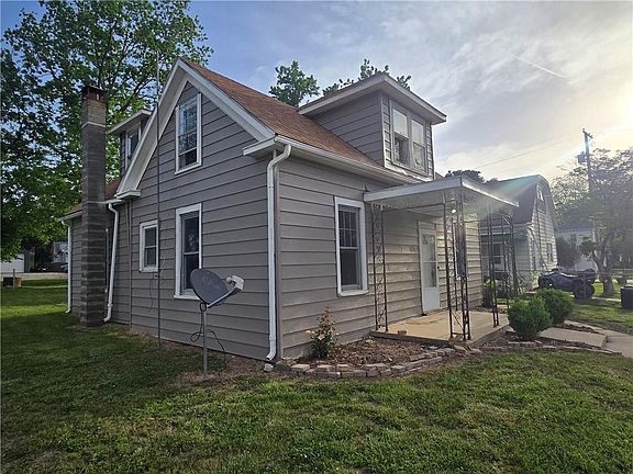 Welcome to this updated 1.5-story home featuring fresh interior and exterior paint and brand-new carpet throughout. The main level offers a spacious primary bedroom for convenient single-level living, along with an additional room that can serve as a home office, playroom, or a 4th non-conforming bedroom. Enjoy the ease of main-floor laundry located in a mudroom just off the kitchen—perfect for keeping things tidy and functional. Relax on the covered front porch or unwind on the east-facing side patio, ideal for enjoying shaded evenings as the sun sets. Additional features include a detached one-car garage. This move-in ready home is full of potential and ready for you to make it your own!