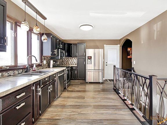 This House!! What a wonderful layout..with the most beautiful kitchen you've ever seen at this price point! You'll enjoy room for everyone between the large recently remodeled workable kitchen with dining area and back deck to enjoy gatherings.. Hardwood floors under everything upstairs and in perfect shape in the two upper bedrooms.2 more good sized possible bedrooms down stairs(may not be to code), Large laundry/storage and warm family room with gas fireplace add to the coziness. Walk out basement . One of the possible bedrooms has been used as a hobby room-but has egress window..Outside you'll enjoy the large deck, lots of patio space, and newly sodded fenced in yard area for little ones. Hot tub may stay with an acceptable offer! And for garage..22x 26, heated and a/c..with more outdoor storage in the 12x12 shed. Roof re-shingled fall of 2020.