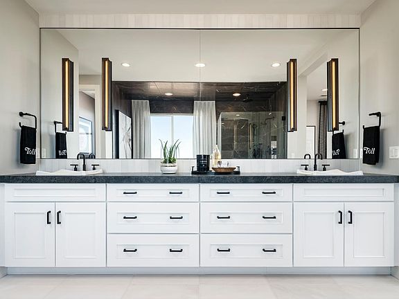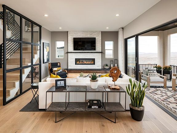 The Ridge by Toll Brothers Heights Collection professionally decorated model home is for sale and loaded with designer extras. The Cutler s welcoming entrance offers views of an open-concept floor plan, hardwood floors and luxurious finishes. Located off the foyer is a stunning versatile flex room to suit your needs as a home office, with French doors leading to the front covered patio. The gourmet kitchen makes a statement with its premium finishes, upgraded cabinets and door hardware, upgraded countertops, designer backsplash, stainless-steel appliances, and large walk-in pantry. The kitchen showcases a beautiful custom breakfast bar attached to the huge center island, ideal for casual dining and entertaining. The casual dining area is adjacent to the kitchen and provides a convenient and intimate setting. The great room is the perfect setting for relaxation with its cozy 48 Mezzo linear gas fireplace and ample natural light from the multi-sliding glass door. The first-floor offers a bedroom suite complete with a private bath and walk-in closet. The second floor offers a spacious loft for additional entertaining, study, and living space. The secondary bedrooms upstairs offer ample closet space and share a hall bathroom. The spacious primary bedroom offers ample natural light and a seating area. The luxurious primary bathroom showcases a large tiled walk-in shower, freestanding tub with a large glass window, beautiful dual-sink vanity, private water closet, linen closet,