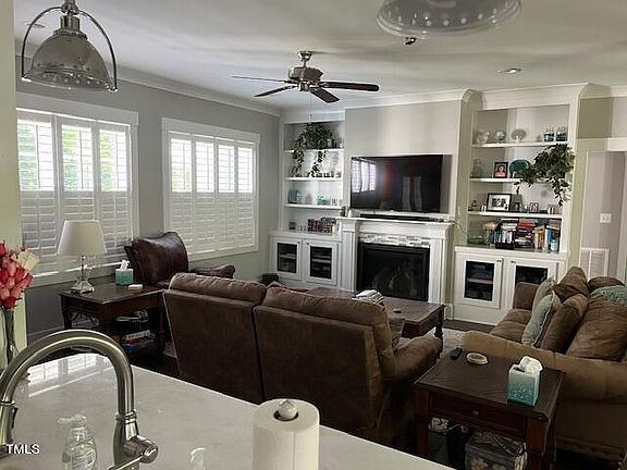 Builder's personal home on a large lot near downtown Cary. This open floorplan features many upgrades including hardwood floors, tile baths and laundry room, plantation shutters, large walk-in pantry, screened and front porches with composite decking, very private master bedroom with a large walk-in closet, built-in cabinets and shelves in the Family Room, Bedroom/Study, and Master! All baths have quartz or quartzite tops. Kitchen has a beautiful quartzite top and premium cabinets! Two blocks from Town Hall, but feels like it is in the country!