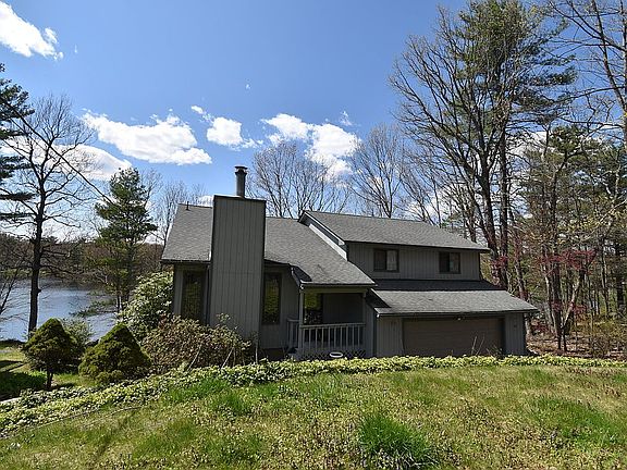 Impressive Lakefront with incredible views! Contemporary home with open floor plan is ready for your enjoyment! Home boasts 3 bedrooms, master has MB and sliders to private deck overlooking the lake (WHAT VIEWS!) Kitchen and breakfast nook with cathedral ceilings and exposed wood beams. Lovely pass thru to the formal dining room. Recently refinished Hardwood floors too! Sunken living room with T & G wall and skylights, stone FP and steps up to main floor. Lower level has Huge family room with wood stove, office area, long foyer , 1/2 bath, laundry room and storage area. 2 car garage, basement and crawl space. Oil heat, FULL HOUSE GENERATOR and PAVED DRIVEWAY Located in community with lakes, beaches, pool and community center. Minutes from NJ border......