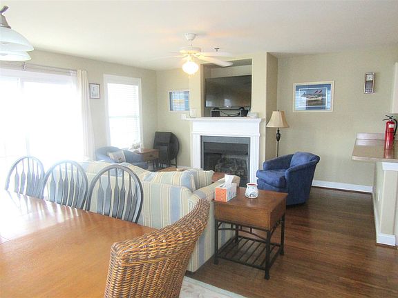 WILDWOOD-BEACH-BOARDWALK easy walk from this spacious first floor East side condo to restaurants, bars and shopping. The generous South facing Balcony provides a ‘birds eye’ view to watch the Fireworks. The open floor plan lends itself to entertaining with an over-sized dining table with extra leaves that fold into itself and a Gas Fireplace featuring a niche above for the TV, New Bamboo Hardwood Flooring, plenty of storage throughout the unit and a new tub/shower in the master bedroom. Kitchen offers a generous breakfast bar, gas range and plenty of cabinets for storage. There is a ‘kids retreat’ with child friendly décor featuring full over queen bunk beds and play space. Condo features custom colors throughout with rounded corners and has been meticulously maintained. Rear common area features two outside showers and space for BBQ’s. Keyless Entry Garage with two assigned parking spaces and a private storage closet for the toys. Condo is being sold Furnished including the TV’s and Turn-Key less personals-just bring your swimsuits! Even on rainy days it’s a great Day to be at the Shore in the Wildwoods! Condo Fee includes common area water & sewer, exterior building maintenance, landscaping, fire, flood and liability insurances. No assessments. A financially healthy and solid condo association.. Associated Docs: Master Deed, By-Laws, Amendments, Covid-19 Hold Harmless Release