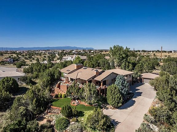 Welcome to this custom ranch-style home in the coveted Liberty Point area offering 6,098 sq. ft. of luxurious living space on a 1.78-acre lot with beautiful views of the Pueblo Reservoir and mountain range. This exceptional property features 4 bedrooms, 5 bathrooms, 4 fireplaces, a heated 3-car attached garage & 2-car detached garage. Inside, vaulted ceilings with skylights fill the space with light, spacious living room with custom brick fireplace, formal dining area, wet bar and access to the covered deck and sunroom. The gourmet kitchen boasts a large island, granite countertops, double ovens, a gas stovetop, and a cozy fireplace, The primary suite is a private retreat with a fireplace, sitting area and access to the back deck and sunroom. It also includes a walk-in closet, 5-piece bath with a jetted tub, walk-in shower and dual sinks. On the main floor, two additional bedrooms each have an en-suite bath and walk-in closets, plus a large laundry room and powder room. The walk-out basement offers a family room with a gas fireplace, wet bar, game room, flexible space, wine cellar, storage room and a fourth bedroom with a 3/4 bath. It also provides access to the covered patio. Outside, enjoy breathtaking mountain and lake views from several decks surrounded by mature trees, lush landscaping and expansive grass areas. This home blends luxurious living with natural beauty and thoughtful design. There are so many custom items in this home you must see!!