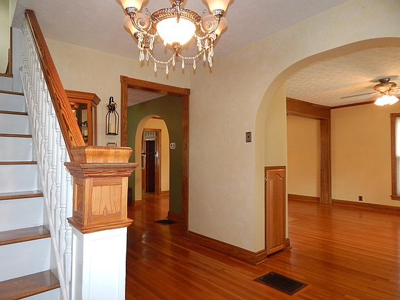 Custom woodwork, vintage hardwood floors and pride of ownership throughout this immaculate home! Great living space indoors and out with a location close to downtown. Enjoy 1572 sqft with a formal entry, large living room, den/dining room, eat-in kitchen, three bedrooms, flex room, and 1.5 baths plus a full unfinished basement. The kitchen and bathroom cabinetry and trim was hand-made by the owner and has granite countertops. There is main-level laundry in the kitchen. The bedrooms and full bathroom are upstairs. A possible 4th bedroom or flex room is located off the full bath too. The home is located on the alley corner and is approximately 55x188' with mature landscaping with wildflowers and excellent garden area (rhubarb and asparagus established) plus privacy fencing, blacktop and gravel off-street parking, three-car detached garage with small lien-to off the back perfect store firewood! The third bay of the garage has the workshop and features a wood-burning fireplace, cable-hookup, water and heating/cooling and electricity! There is a covered front porch, covered back porch with stamped concrete, a stone-paved patio and a sidewalk leading to the garage. This home is move-in ready with updates and waiting for its new owners. Immediate possession!! Call today for your appointment to see this lovely home!