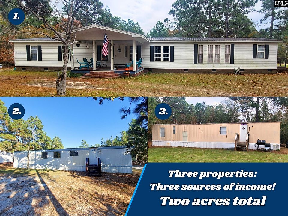 Great investment opportunity! This is your chance to own 3 homes with excellent rental income located on 2 acres. All of the homes have tenants in place. The first home- 117 East Woods Court- has four bedrooms and two bathrooms and is currently rented for $1,250 per month. This home has 2,550 square feet. Don't miss the spacious back deck and large storage shed! The second mobile home is two bedrooms, one bathroom and is currently rented for $800 per month. The third home has two bedrooms, one bathroom and is currently rented for $825 per month. THE TOTAL RENTAL INCOME ON THIS PROPERTY IS CURRENTLY $2,875! Photos and inspection reports will be provided to serious buyers.