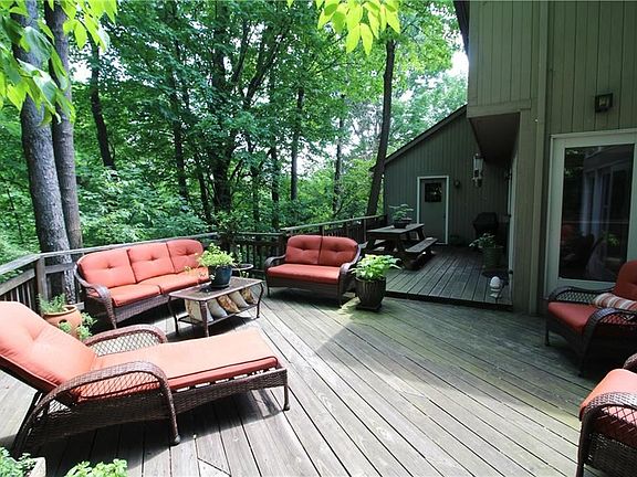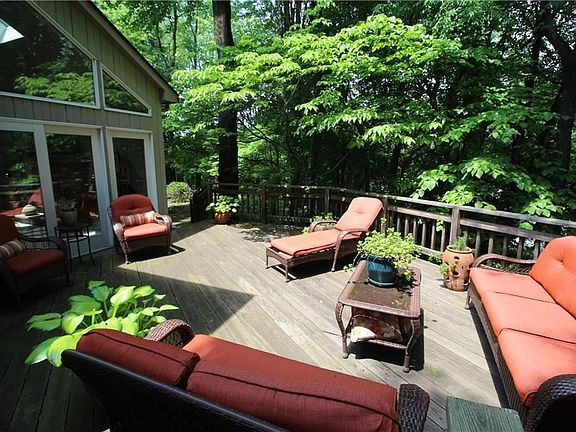 Stunning CUSTOM BUILT 2 story contemporary nestled on a PRIVATE, landscaped, WOODED lot. The modern eat in kitchen with DOUBLE OVENS opens to a wall of windows and NEW SKYLIGHTS in the living room and a SPRAWLING CUSTOM DECK "in the trees". The first floor also boasts a wood burning fireplace, formal dining room, family room, office, laundry, 1/2 bath and LOADS OF LIGHT. Upstairs find 3 bedrooms and 2 bathrooms including WONDERFUL MASTER SUITE w/ a roomy walk in closet. You will find generous storage throughout, deep 2 car garage, additional living space in the basement, new lighting, NEW APPLIANCES, fresh paint, NEW HWH, new fence, hardwoods, an exceptional rear yard and patio with access to new library, public market, hiking trails and Durand Park. A must see! Call for a showing today!