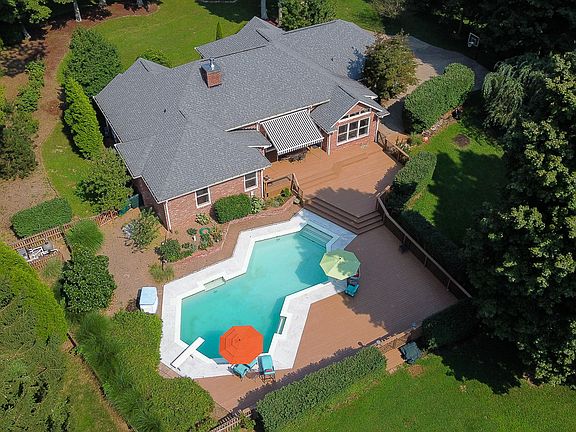Welcome Home to 117 Edgewood Way in Pewee Valley! This beautiful 4 BR, 4 BTH, Brick Ranch sits on 1 acre of property with over 4500 sqft, a 3 car garage and an inground gunite pool! Edgewood Manor is a quaint subdivision off Central Avenue in the heart of Pewee Valley. As you enter the home, you immediately experience the open floor plan - the formal dining room, great room and eat-in kitchen all flow together with tons of natural light from large windows across the rear of the home. The Great Room features gleaming hardwood floors, soaring ceilings with intricate box beamed detail, a fireplace with stove insert, built-in bookcase and bar area and large windows overlooking the rear deck with awning cover. Adjacent to the Great Room is the Eat-in Kitchen and this space is to die for! Tons and tons of gathering space in this kitchen! A complete update of the kitchen cabinetry, backsplash, fixtures and countertops was recently completed and looks amazing! Tons of cabinetry and countertop space with a center island and bar seating plus a built in pantry. There a large space adjacent to the kitchen that can be used as a large dining space or can be divided into a breakfast nook and a kitchen living area. Beautiful hardwood floors throughout the Kitchen area with large windows for tons of natural light. Through the Kitchen and the Great Room is the large Formal Dining Room! This area has TONS of wall space for the largest collection of dining room furniture and soaring ceilings and intricate molding details. The Master Bedroom is privately located along the rear of the home, overlooking the pool area, and is generous in size with hardwood floors, his and hers walk-in closets plus a large Master Bath with double vanities, whirlpool tub, separate shower and a private commode. The Laundry can be conveniently accessed through a door in the Master Bathroom. There are 3 additional Bedrooms and 2 full baths on the main level. 2 of the Bedrooms are on a hall with a shared bath. 1 of the Bedrooms is off of the kitchen, down a hallway to a private space with its own full bath and a separate front entrance great for an in-home office! The lower level is mostly finished, including a large Family Room with built-ins plus a wet bar area, a full bath, an office, an exercise room, a storage room and an additional unfinished space that makes for great additional storage and a workshop area. On the exterior, mature trees surround the lot with beautiful landscape area. The inground, gunite pool is AMAZING!!! The pool is deep enough for a diving board and surround by a massive deck for large gatherings. Just off the Kitchen is a nice sitting deck with an awning cover. The yard is a park-like setting and offers great shade areas and plenty of room to roam and play. There is an attached 3 car garage with concrete driveway and walks. YOU WILL LOVE THIS HOME! Convenient Pewee Valley location is within minutes of area amenities and shopping plus quick access to Gene Snyder Freeway!